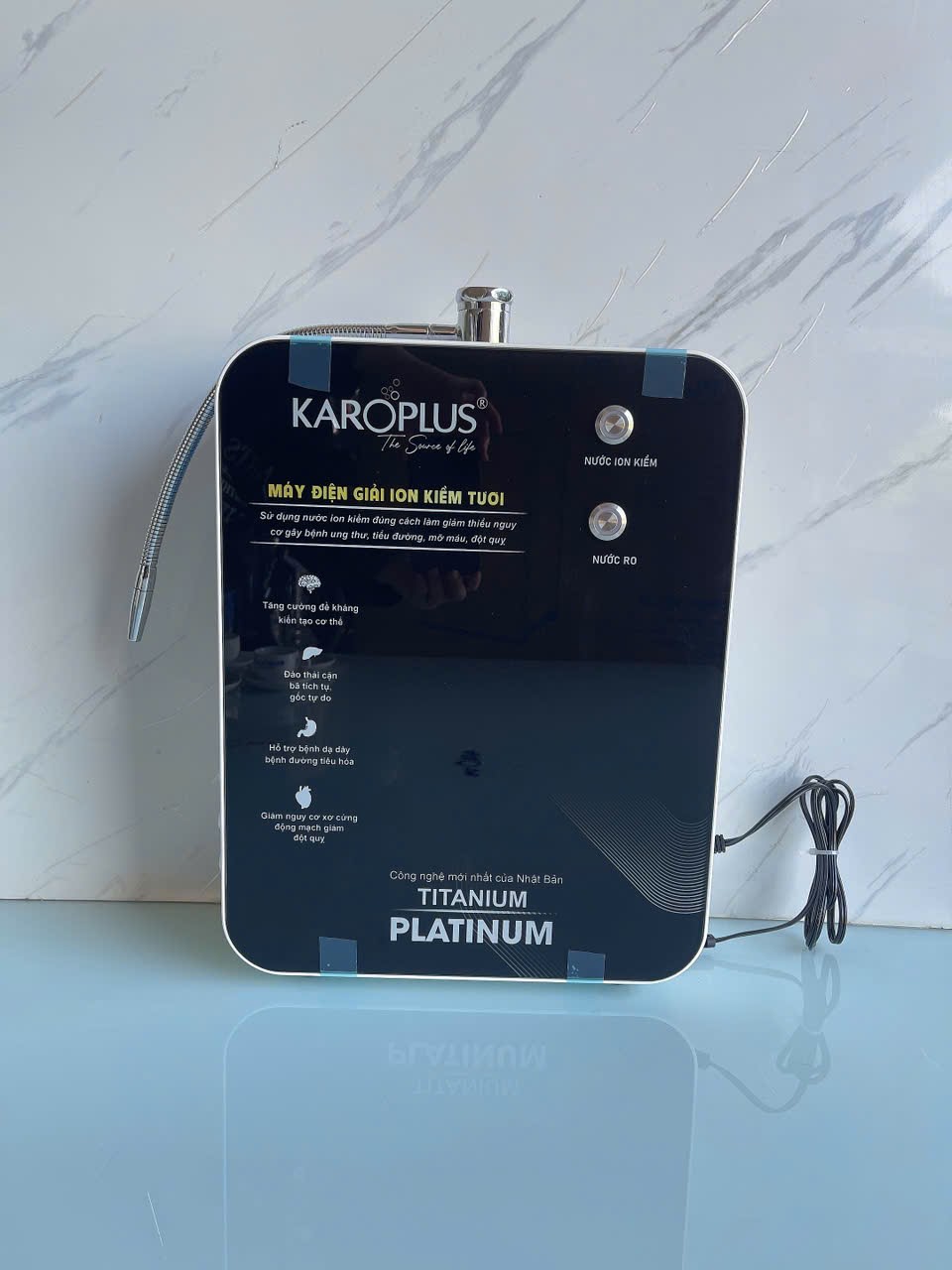 Máy điện phân Karoplus  sử dụng công nghệ điện phân tiên tiến 2 tấm điện cực Titanium với tuổi thọ lên tới 10 năm. Sở hữu 3 lõi lọc mạnh mẽ cùng công nghệ điện phân, mang đến nước Hydrogen ion kiềm ưu việt tốt cho sức khỏe.